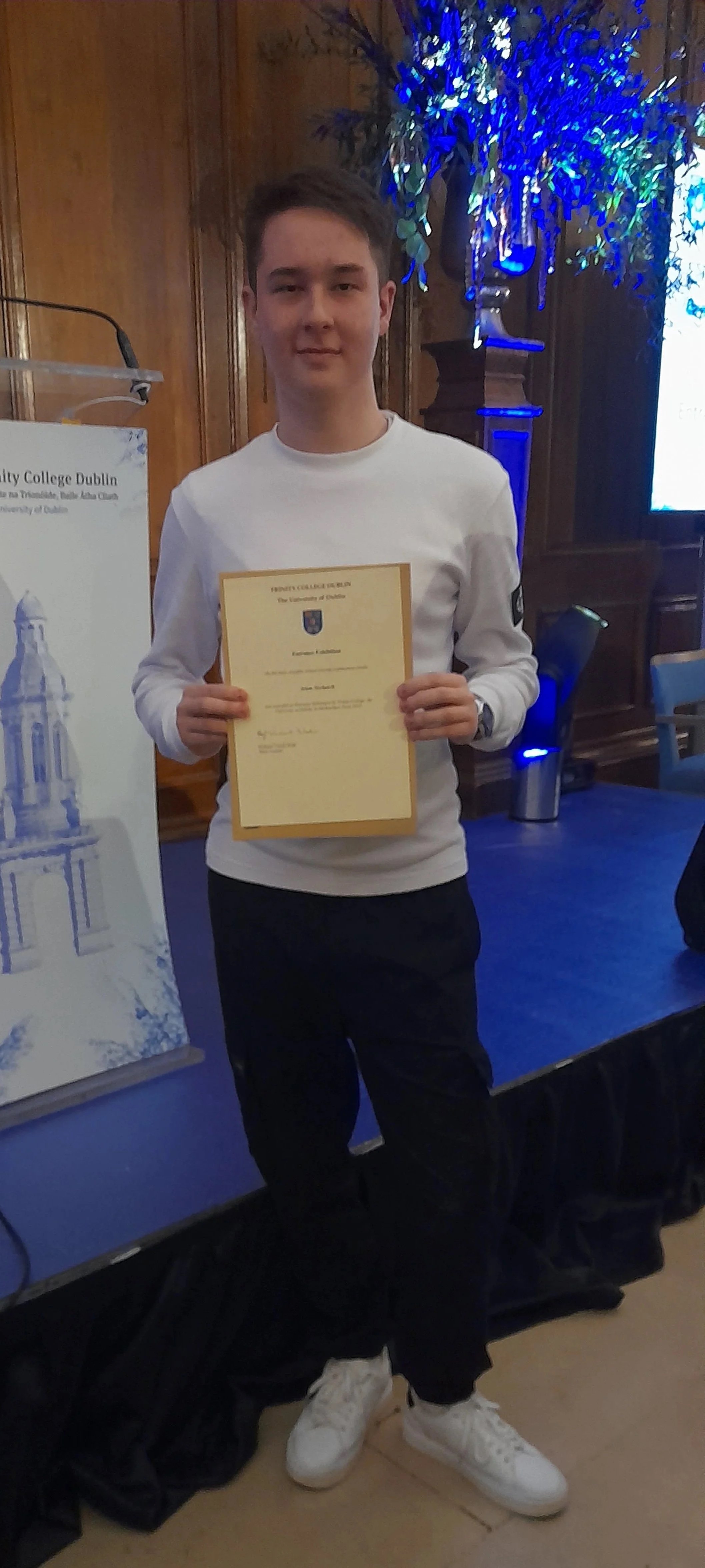 Artem achieved the highest Leaving Certificate points among all Trinity College Dublin entrants from Pobalscoil Iosolde this year, earning this award which celebrates outstanding academic excellence.