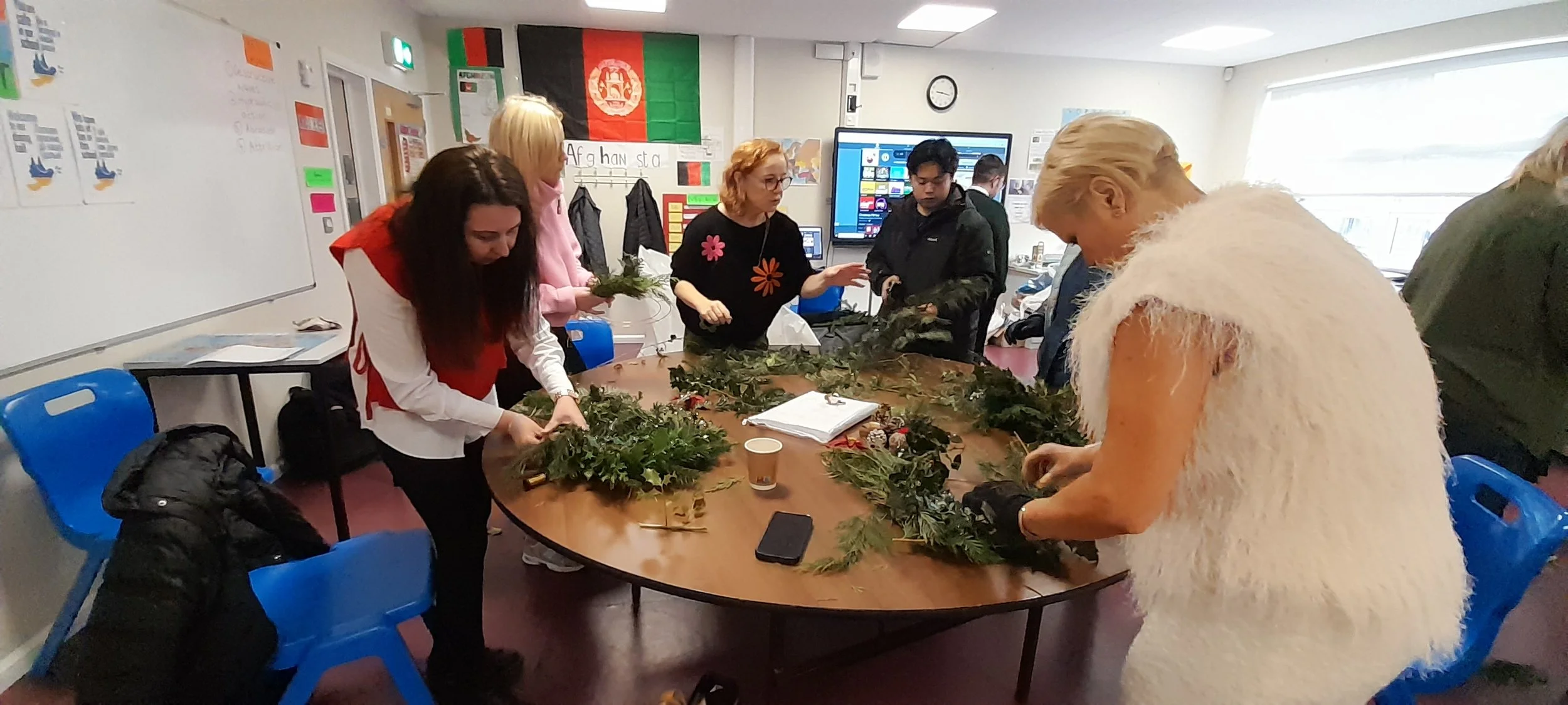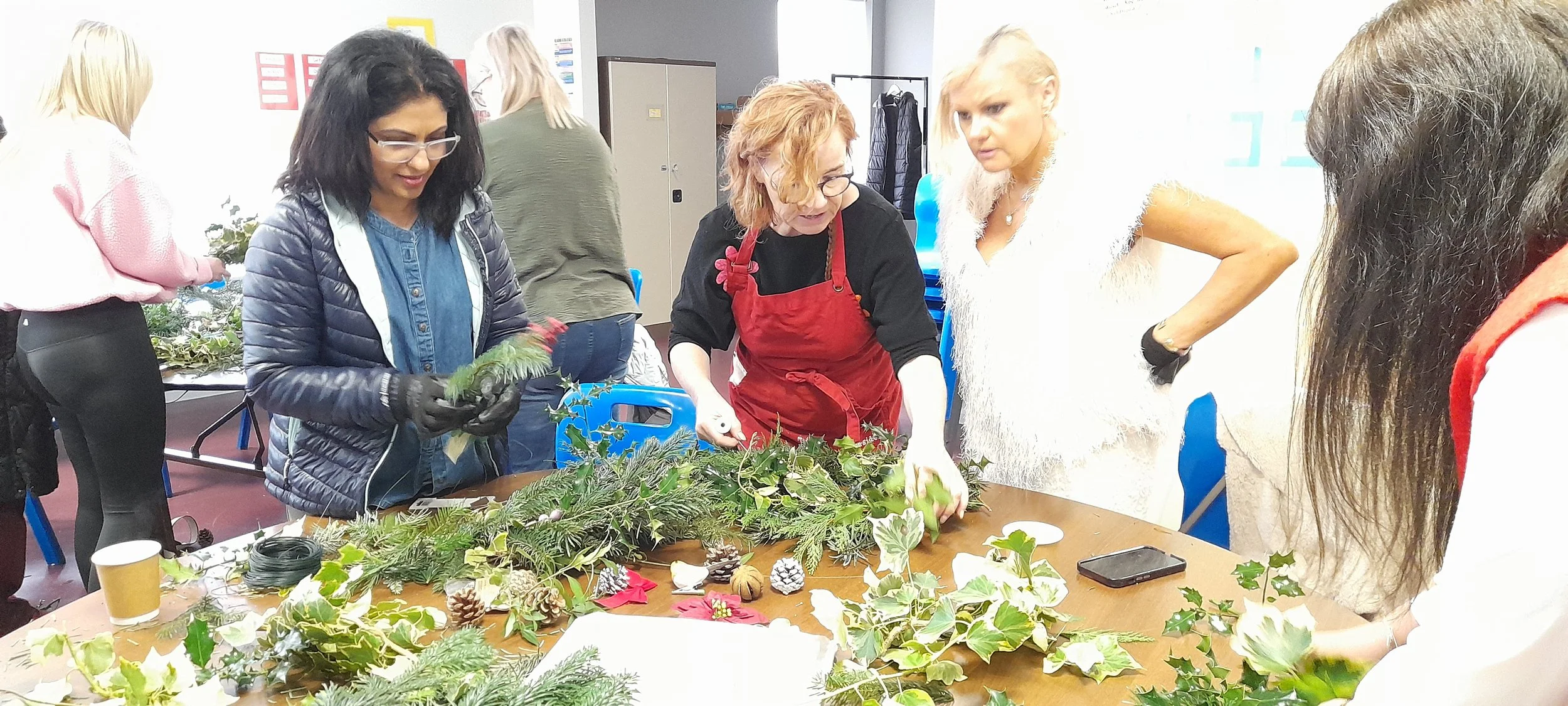 A wonderful festive atmosphere was enjoyed at Pobalscoil Iosolde on Wednesday, 10 December 2025, when a group of parents took part in a Christmas wreath-making workshop. With the expert guidance of Arts and Crafts tutor Martina Kirwan, parents created beautiful wreaths. Each wreath was unique, reflecting each parent’s individual taste and creativity. Parents were delighted with their finished pieces. We look forward to welcoming parents to more craft workshops planned for 2026.