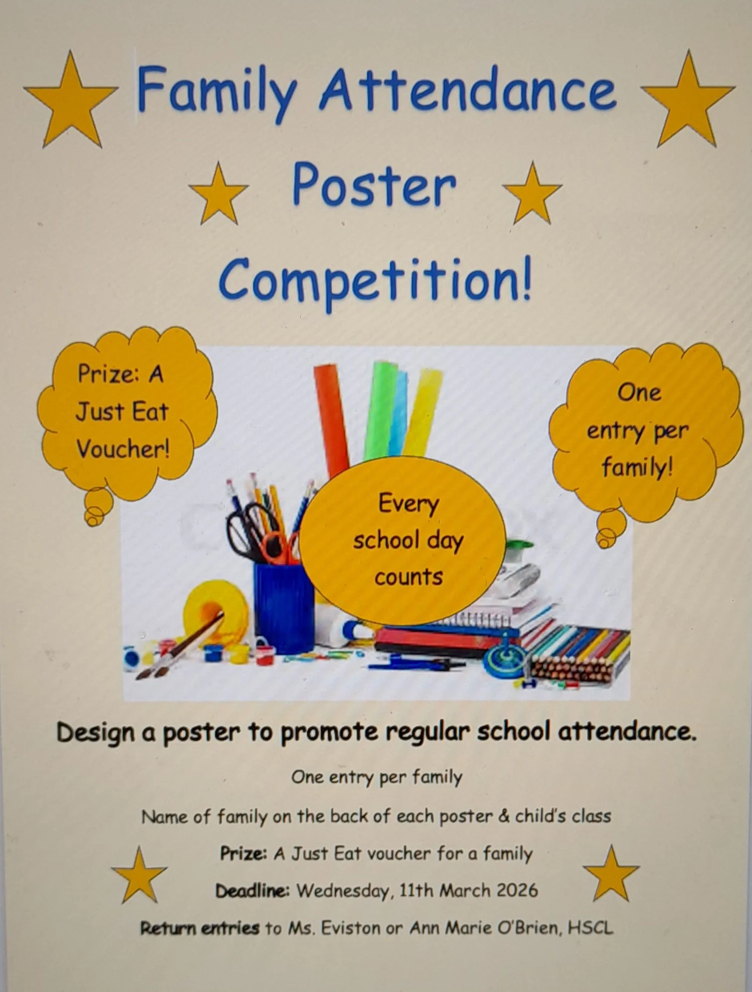 Parents / Guardians, you’re invited to design a poster as a family to promote regular school attendance.